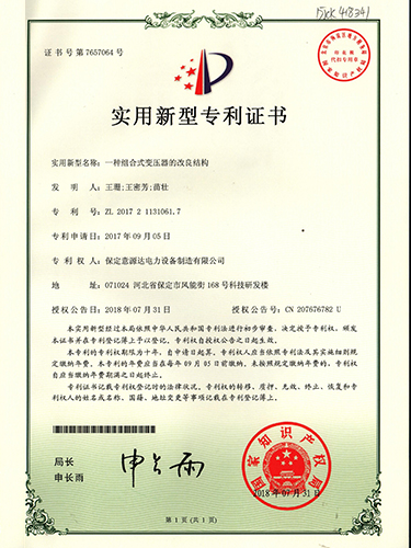 一種組合式變壓器的改良結(jié)構(gòu)-ZL-2017-2-1131061.7 | 一種變壓器防護裝置_ZL 2023 2 1401986.4 | |