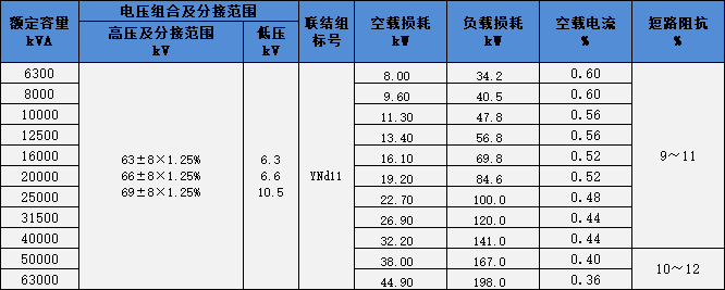 66kV級 11型三相雙繞組有載調(diào)壓電力變壓器