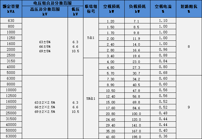 66kV級 11型三相雙繞組無勵磁調壓電力變壓器